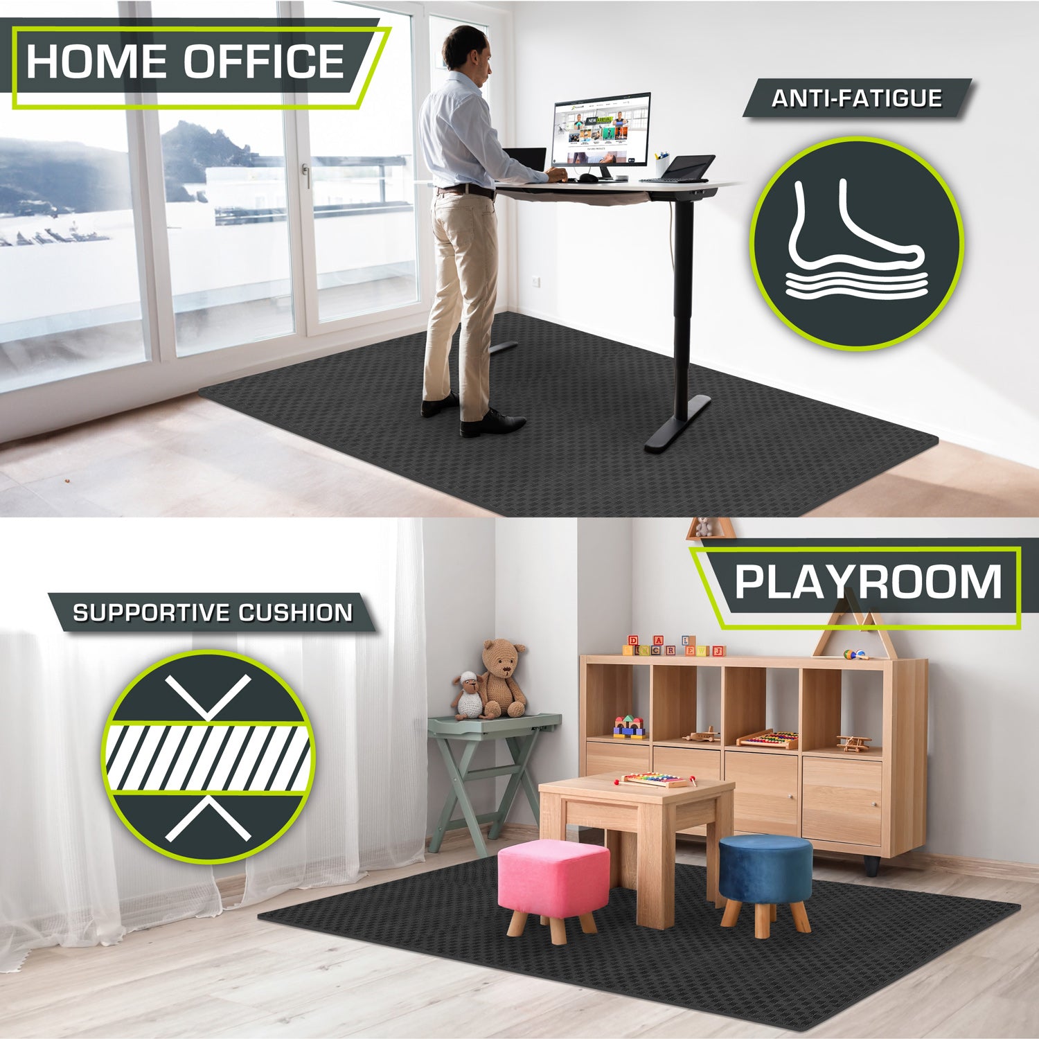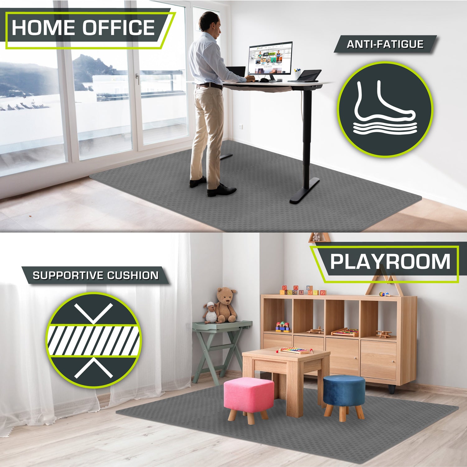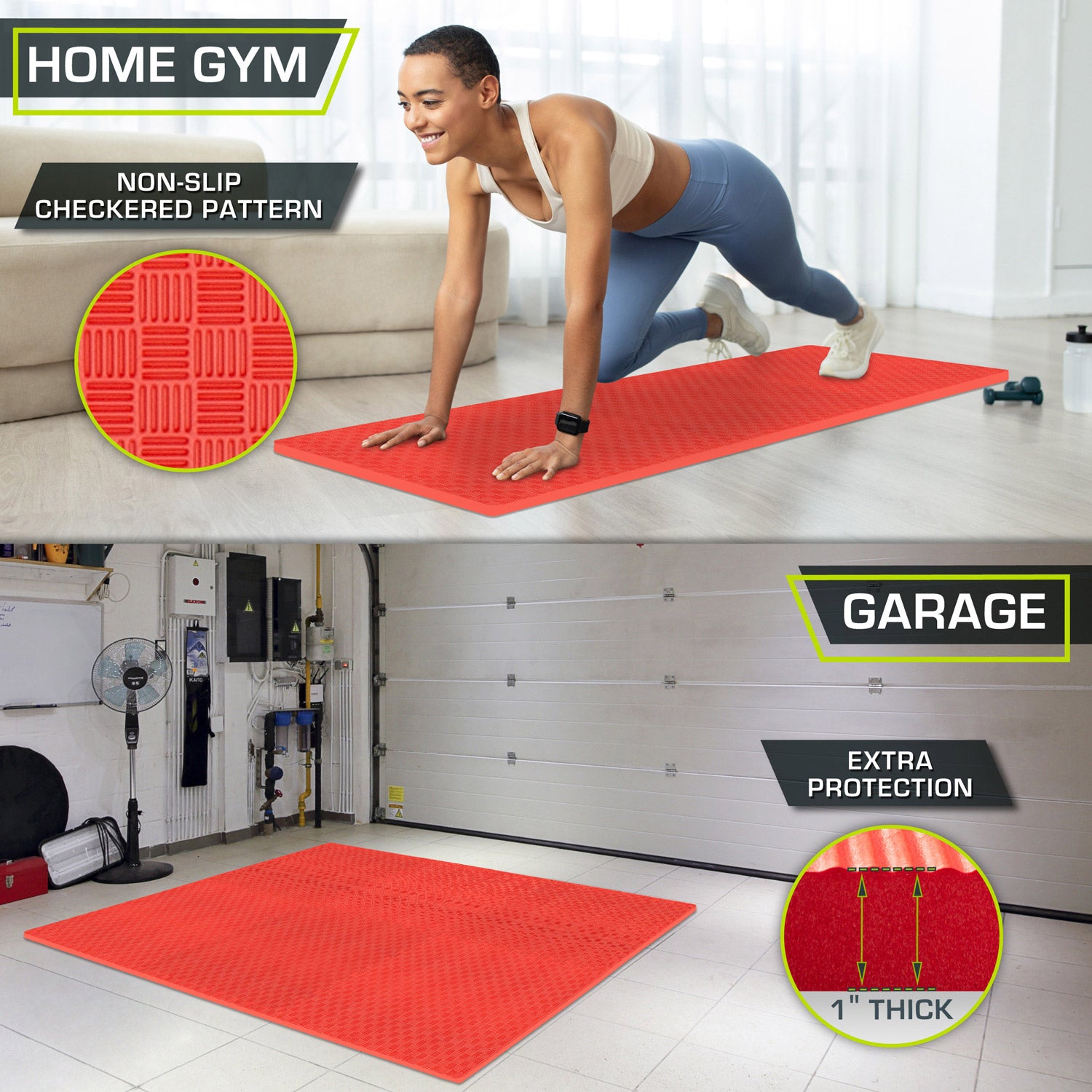 The ProsourceFit Checkered Exercise Puzzle Mat 1-inch is your instant upgrade to an ultra-durable exercise space, perfect for high-traffic areas and demanding workouts. Its textured surface boasts both enhanced traction and non-slip grip, while the supportive 1-inch EVA foam molds to your every move, providing superior cushioning for heavy impact and intense training. Each 24x24-inch tile effortlessly connects, covering 24 square feet for a workout space that stands the test of time. Craving a versatile, super-strong, and convenient workout space for high-traffic areas and intense workouts?