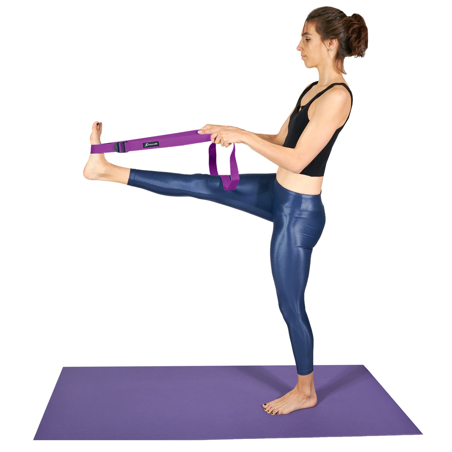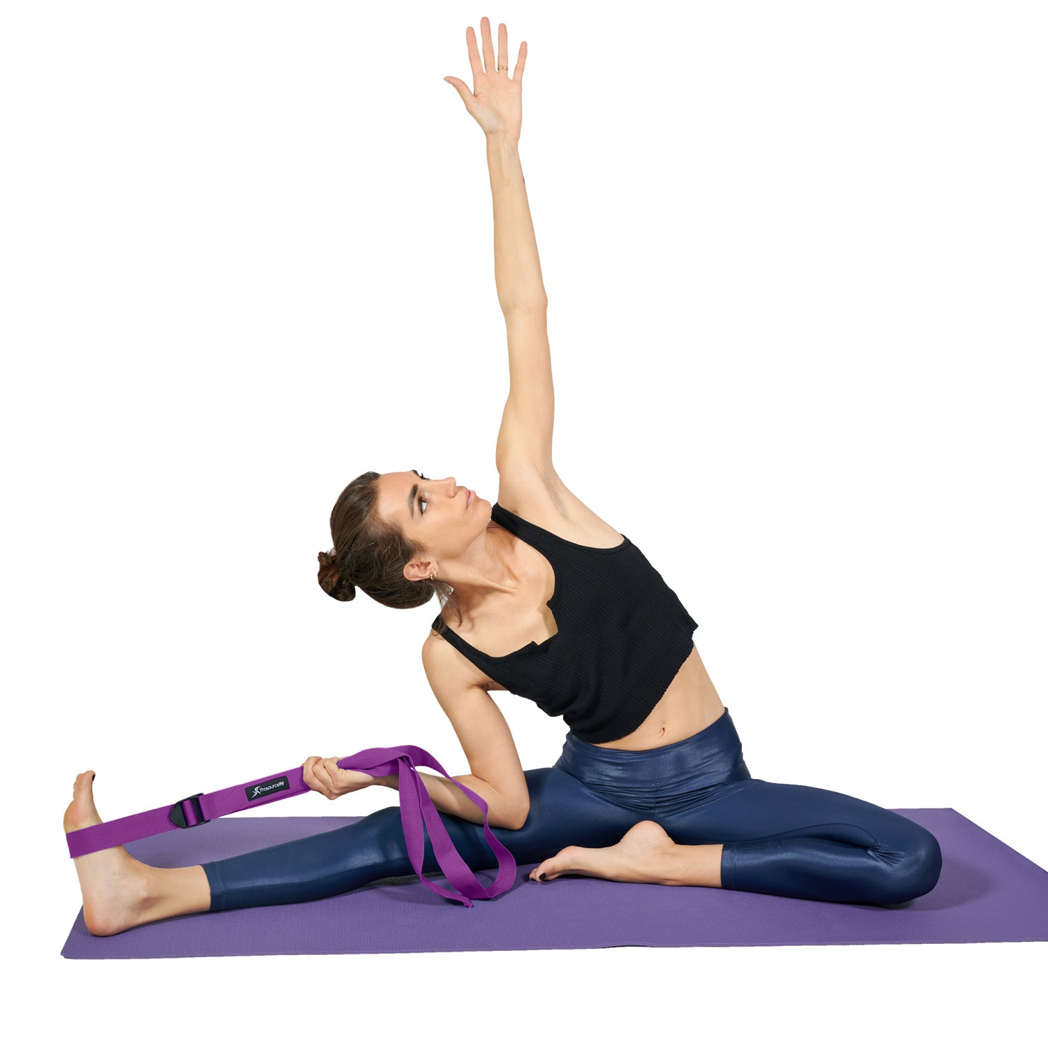 Get the most out of your yoga practice with the ProsourceFit Cinch Buckle Yoga Straps, designed to increase flexibility safely. The 8-foot durable cotton stretching strap is ideal for helping even tall yogis reach further and hold poses longer, and holds up through a variety of stretches and daily workouts.