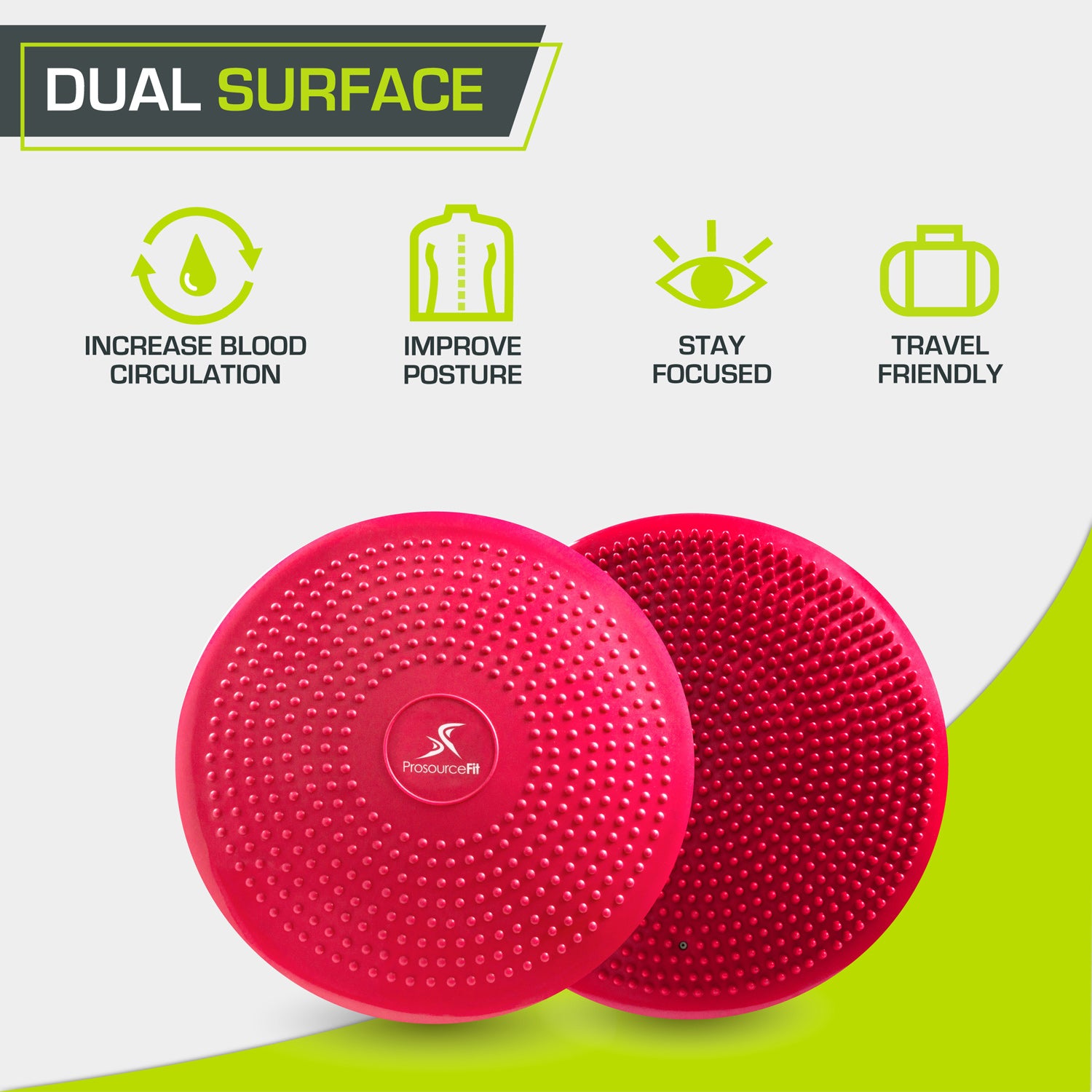 Shake up your standard workout with the Core Balance Disc from ProsourceFit, designed to activate your core muscle and improve overall strength and balance. The inflatable stability disc is dual-textured for a non-slip grip, and provides an uneven surface that challenges your body in new ways.