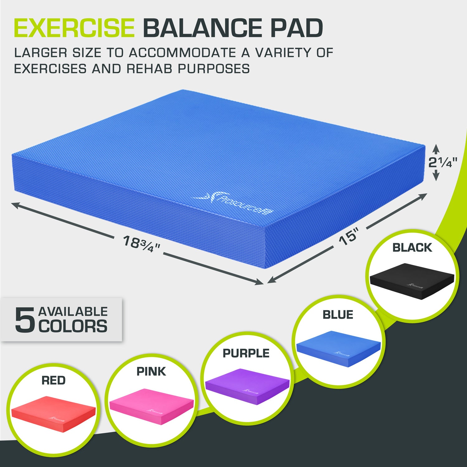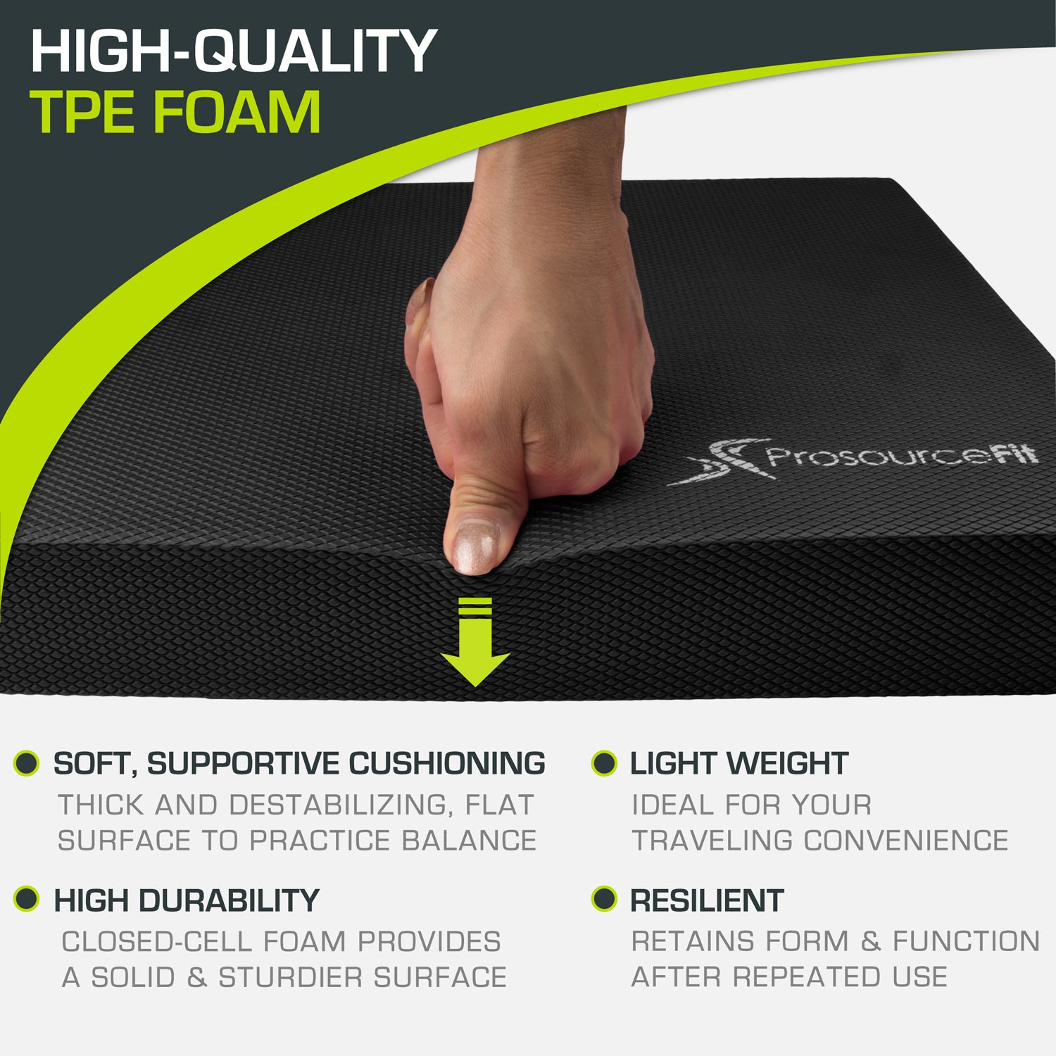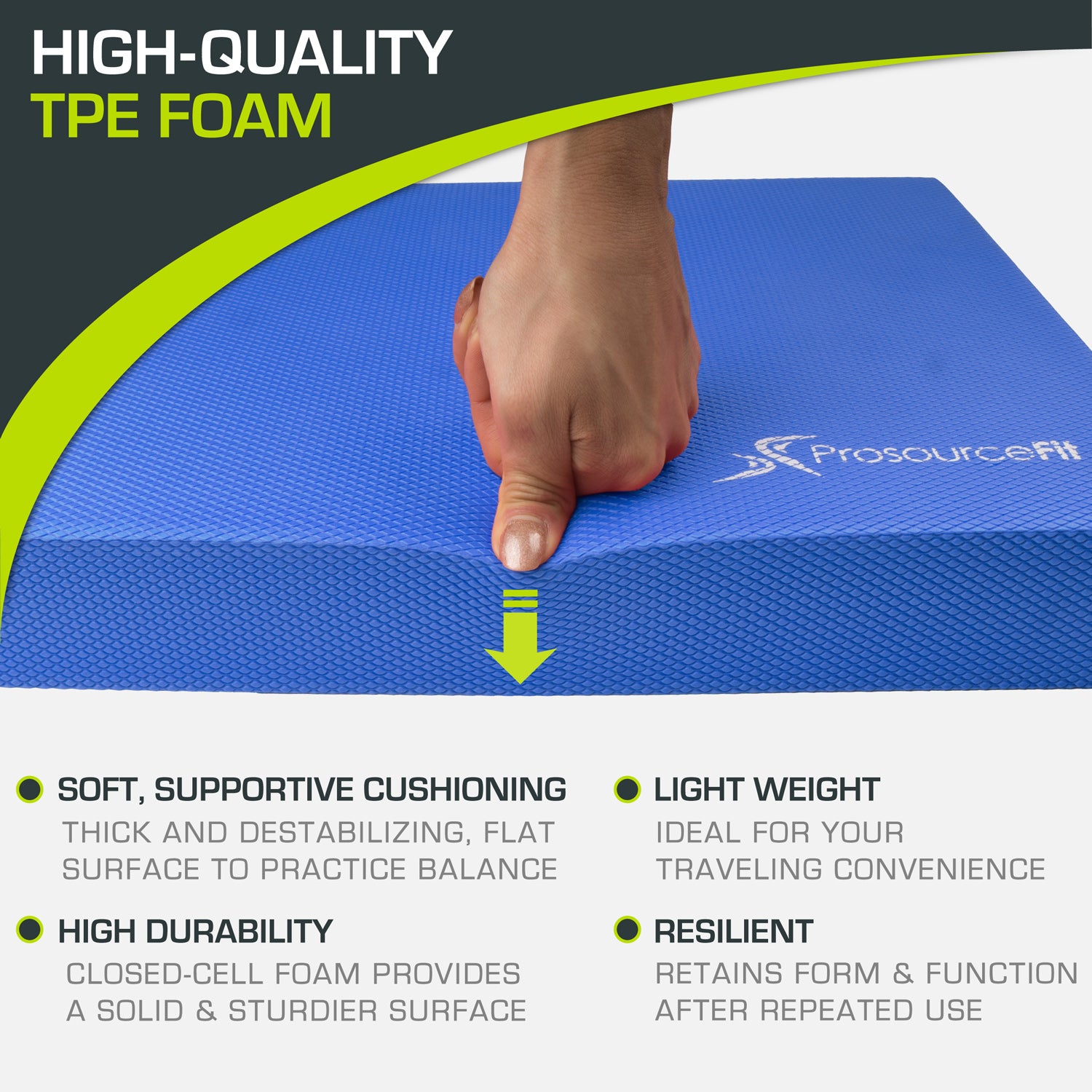 Whatever fitness level or age, the large ProsourceFit Exercise Balance Pad is great for improving the fundamentals of health and well-being. With a larger surface area, you can perform a larger variety of exercises and variations to make training more challenging and fun while improving stability and core strength for better athletic performance, injury prevention, and balance enhancement. The destabilization surface is a great addition to your training while strengthening often forgotten foot and ankle muscles. The 15x19-inch flexible foam mat is 2-inch thick, making it the perfect companion for exercises that boost strength, endurance, and balance. Try single-leg balances, lunges, step-ups, push-ups, planks and standing yoga poses on the lightly textured, slip-resistant cushioned mat to spice up your workouts or for safe rehabilitation and prevention exercises. This versatile balance pad can also be used for core work and as a cushion for knees. Made of TPE, the large ProsourceFit Exercise Pad is easy to clean and won’t absorb sweat to keep odors away. It's also lightweight and can be packed in a suitcase or carried with you to work so you can work on your well-being anywhere anytime.