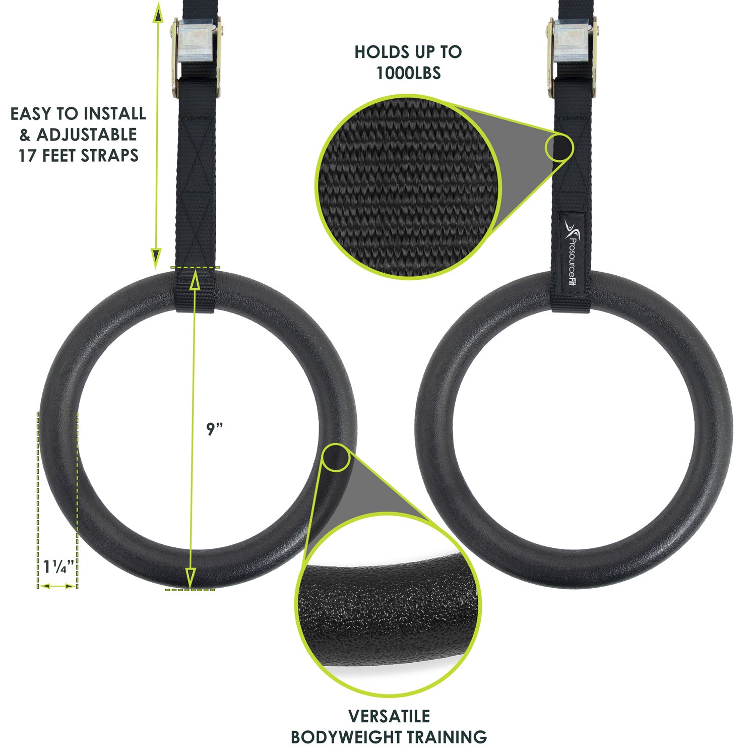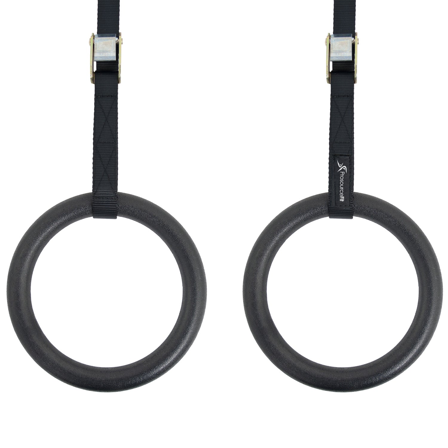 Recently made popular through CrossFit, any athlete can now reap the benefits of gym rings. ProsourceFit Fitness Gymnastics Rings can be used at home for a variety of exercises to develop entire upper body and core strength. With extra-long 17 foot straps, the rings can be easily adjusted and installed for working on push-ups, dips, muscle-ups, levers, and many more upper body, core, and balance exercises. The premium quality Lexan rings are a more economical choice for athletes on a budget, and can hold up to 1,000 lbs. Safety note: Ensure that your straps and anchor point are fully secure before working out.