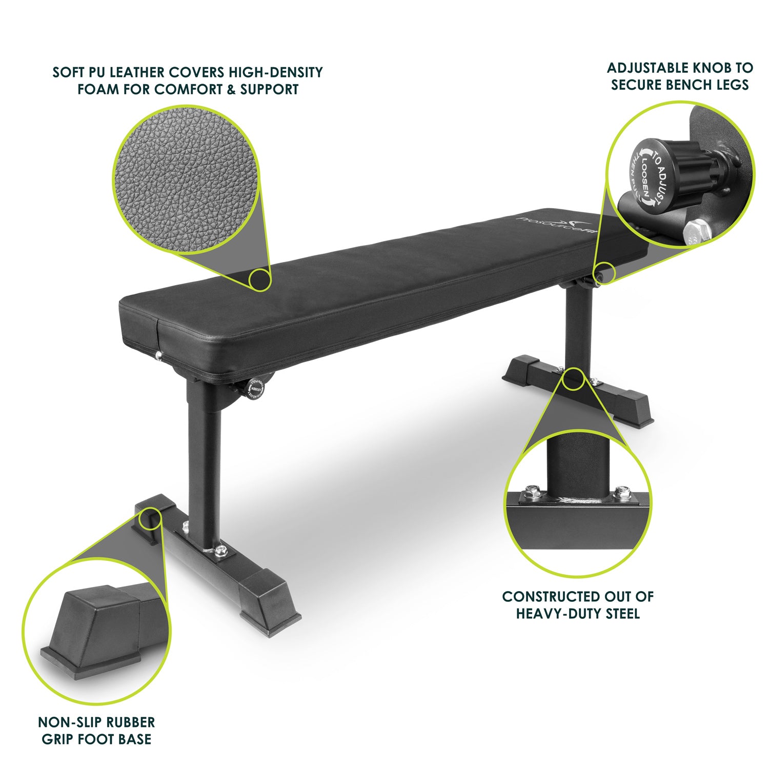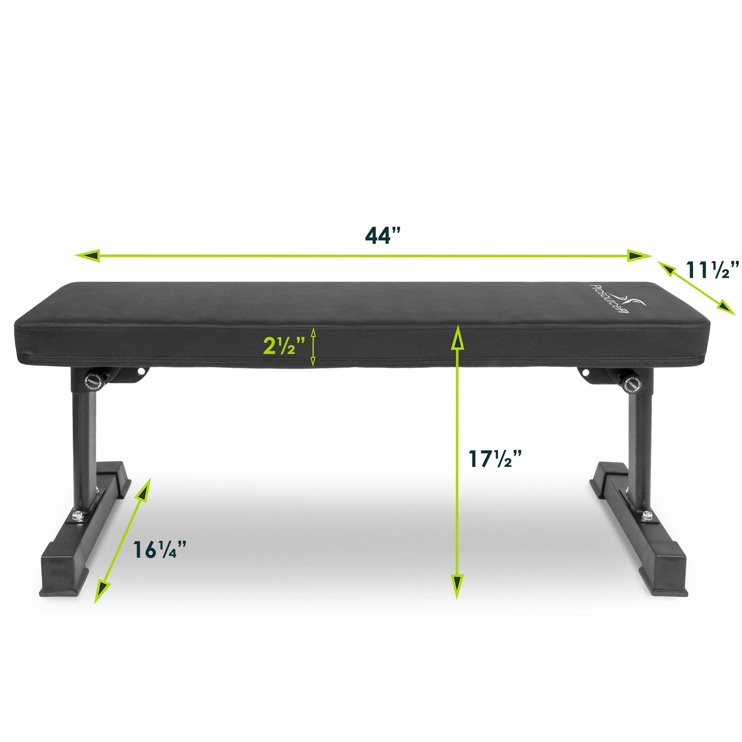 The ProsourceFit Flat Weight Bench is a versatile workout essential! This gym bench can be used for a variety of full body workouts with weight and without! The flat weight bench features high-density foam cushion on top covered in leather for a water-resistant, easy to clean surface. The frame is made from top-grade steel and holds up to 660 pounds. Both legs fold into the bottom of the bench for easy storage. Slide the bench under your bed or couch, hang in your garage or closet to save space!
