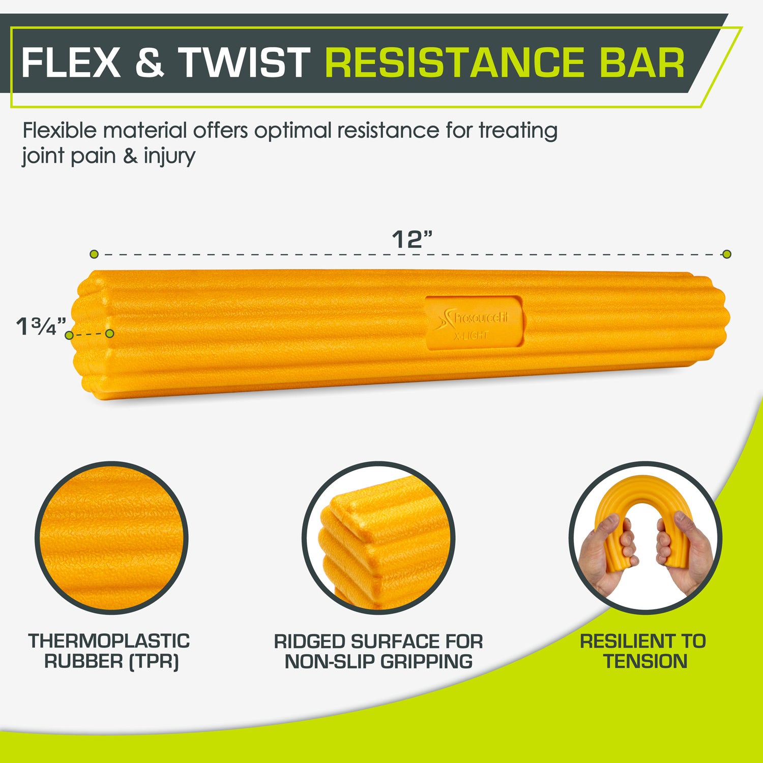 The ProsourceFit Flex and Twist Bar is designed to reduce joint pain, rebuild strength and increase flexibility. This flex bar rehabs tennis elbow, carpal tunnel, tendonitis, golfer’s elbow, and more through isolated wrist movements. Available in sets and singles with 4 different levels of resistance.