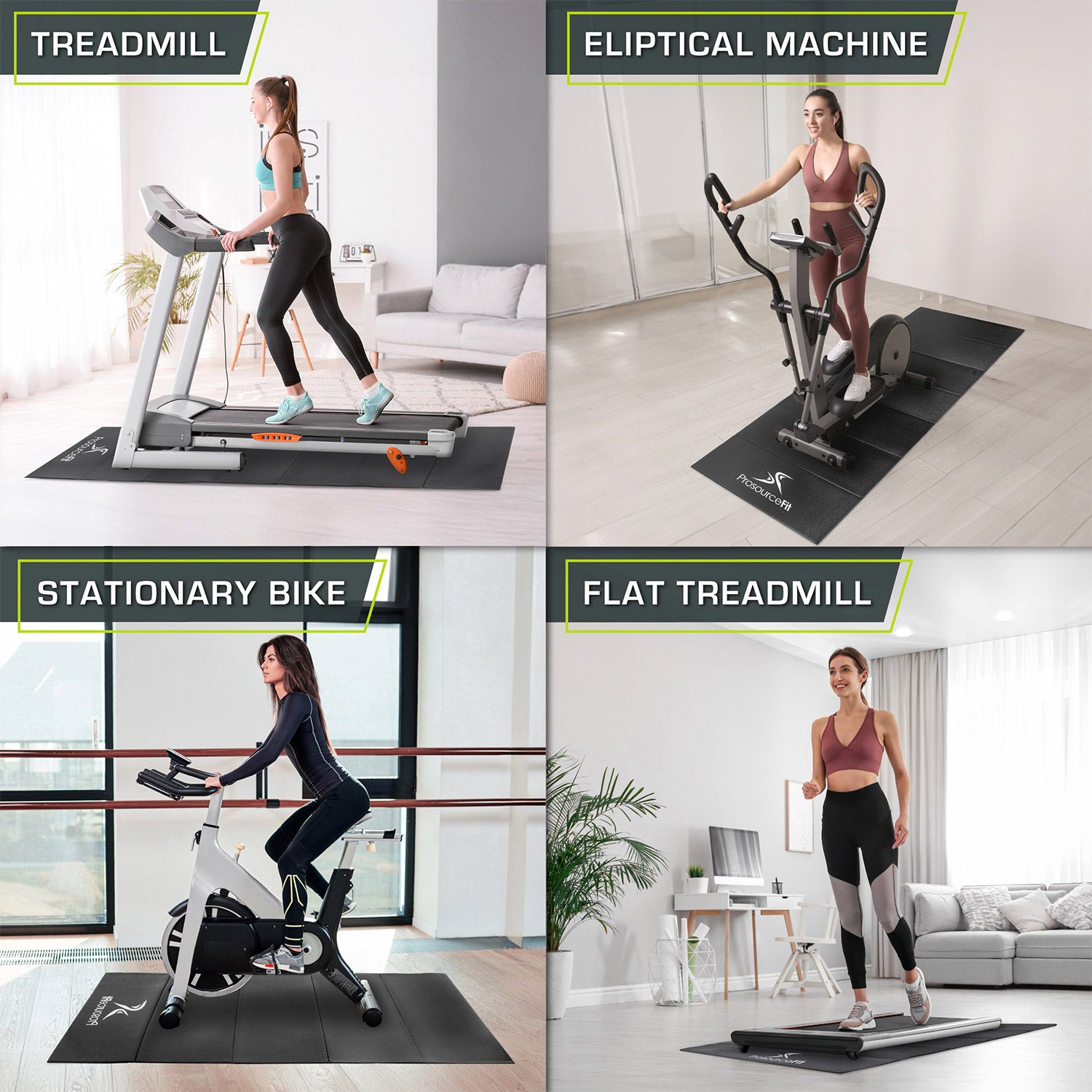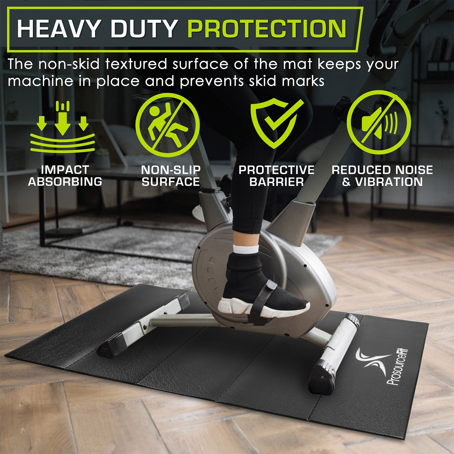 The ProsourceFit Folding Treadmill Mat protects your hardwoods, tile and carpet while reducing noise when using cardio equipment. The thick, fold-to fit mat allows you to exercise at home without worrying about scratching or denting your floors. The large 7’ x 3’ mat has seven folding sections for a custom fit under heavy ellipticals or smaller equipment like a compact step machine.