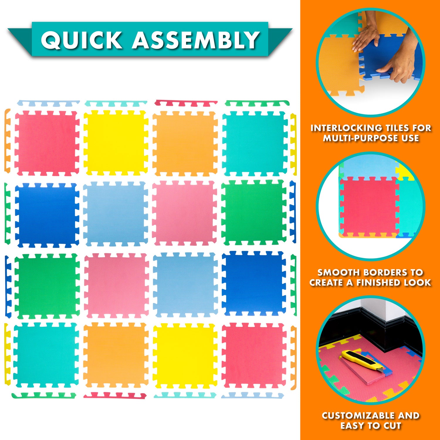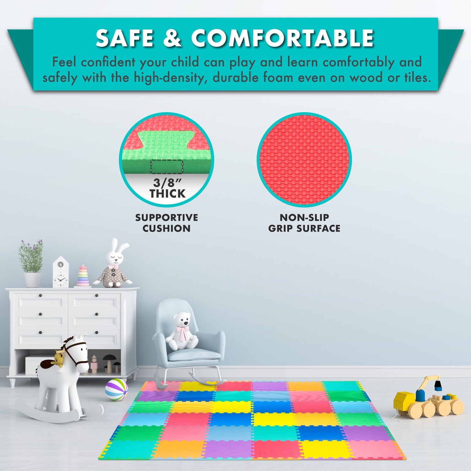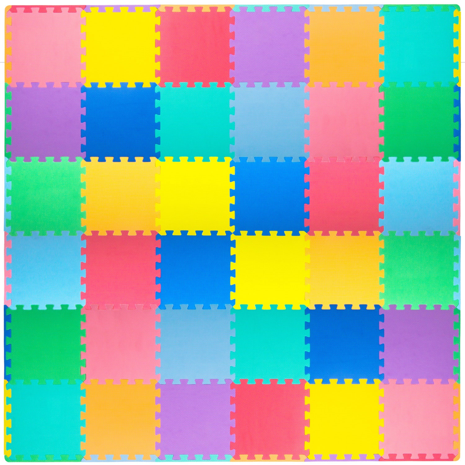 Make playtime more engaging with the ProSource Solid Puzzle Mat for Kids. Featuring 36 interlocking foam pieces, it provides protection and engages your child’s attention with its bright color scheme. Turn any area into a safe and interactive play space for your little one with this colorful mat.