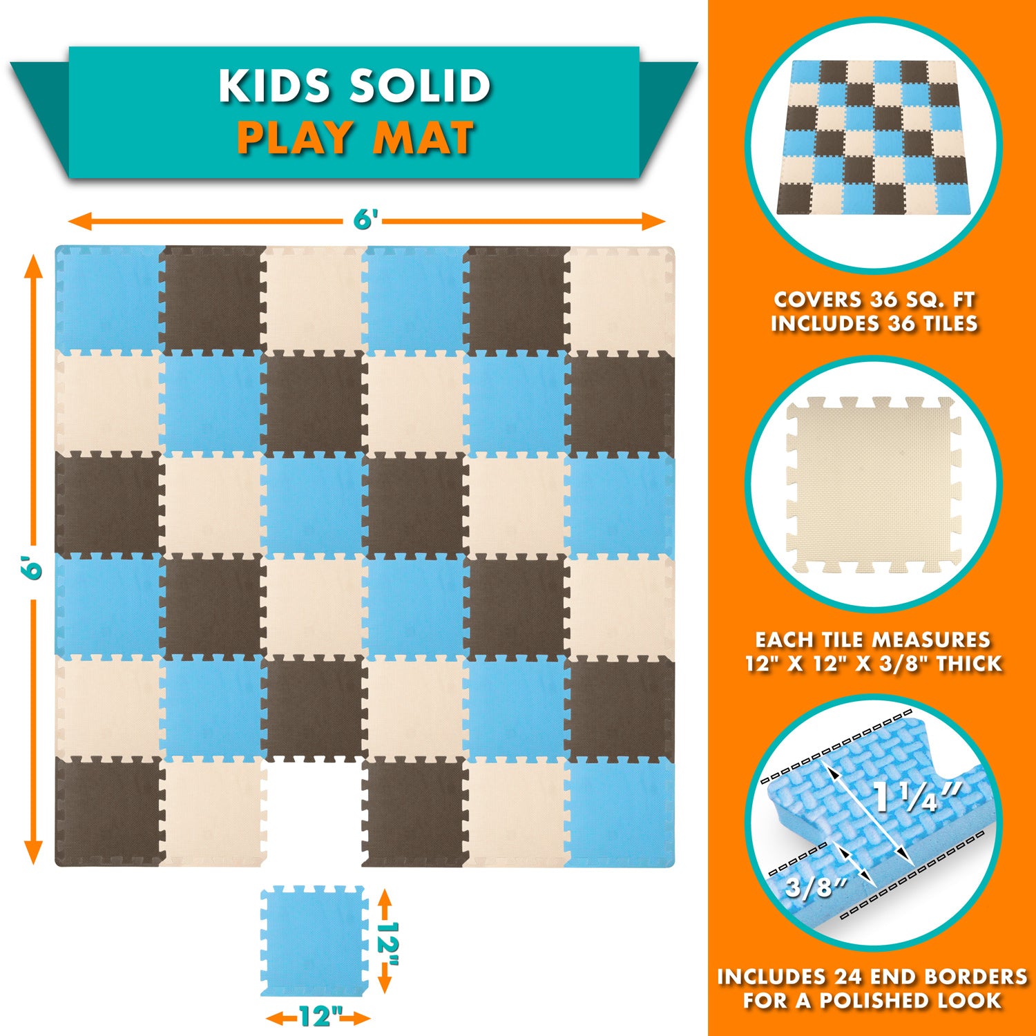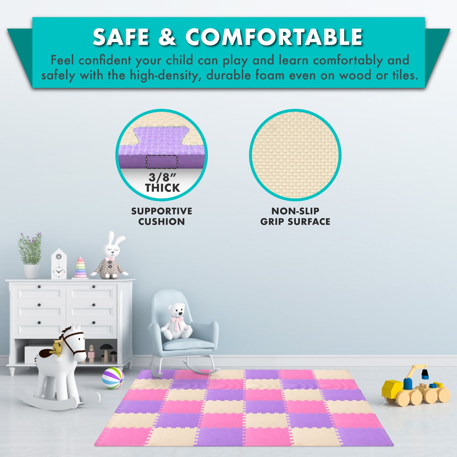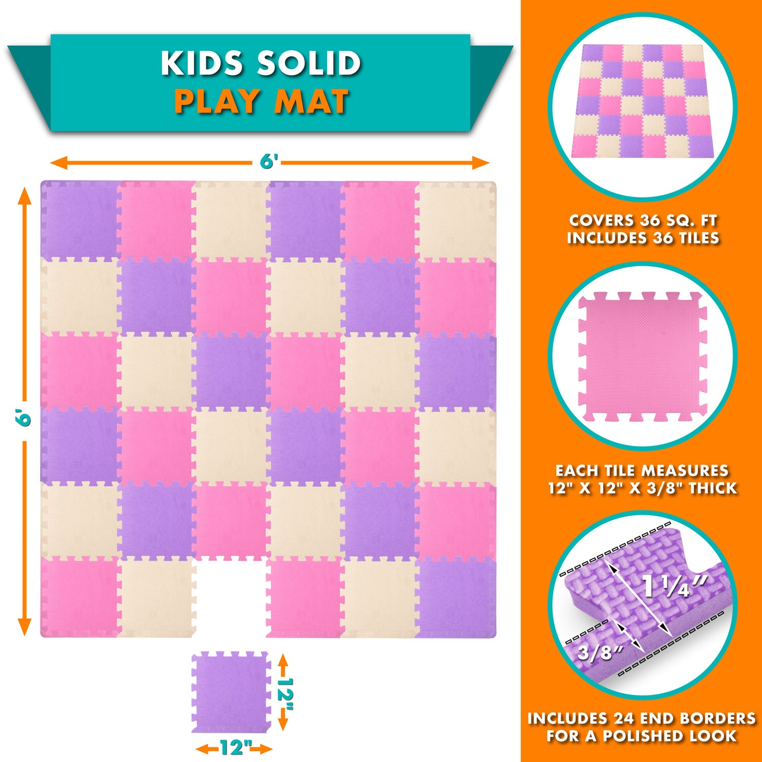 Make playtime more engaging with the ProSource Solid Puzzle Mat for Kids. Featuring 36 interlocking foam pieces, it provides protection and engages your child’s attention with its bright color scheme. Turn any area into a safe and interactive play space for your little one with this colorful mat.