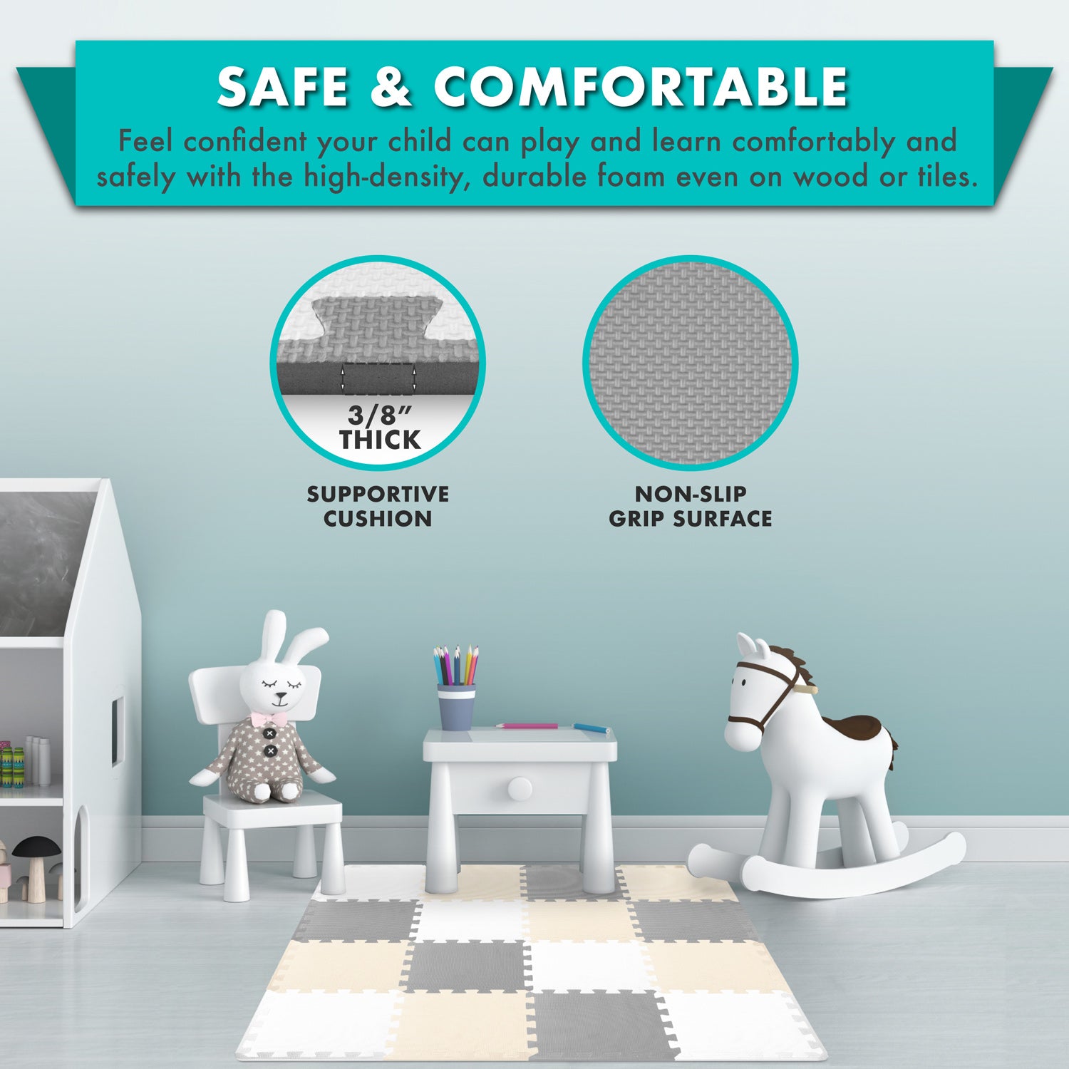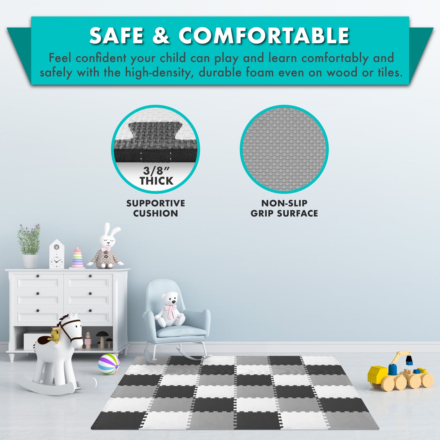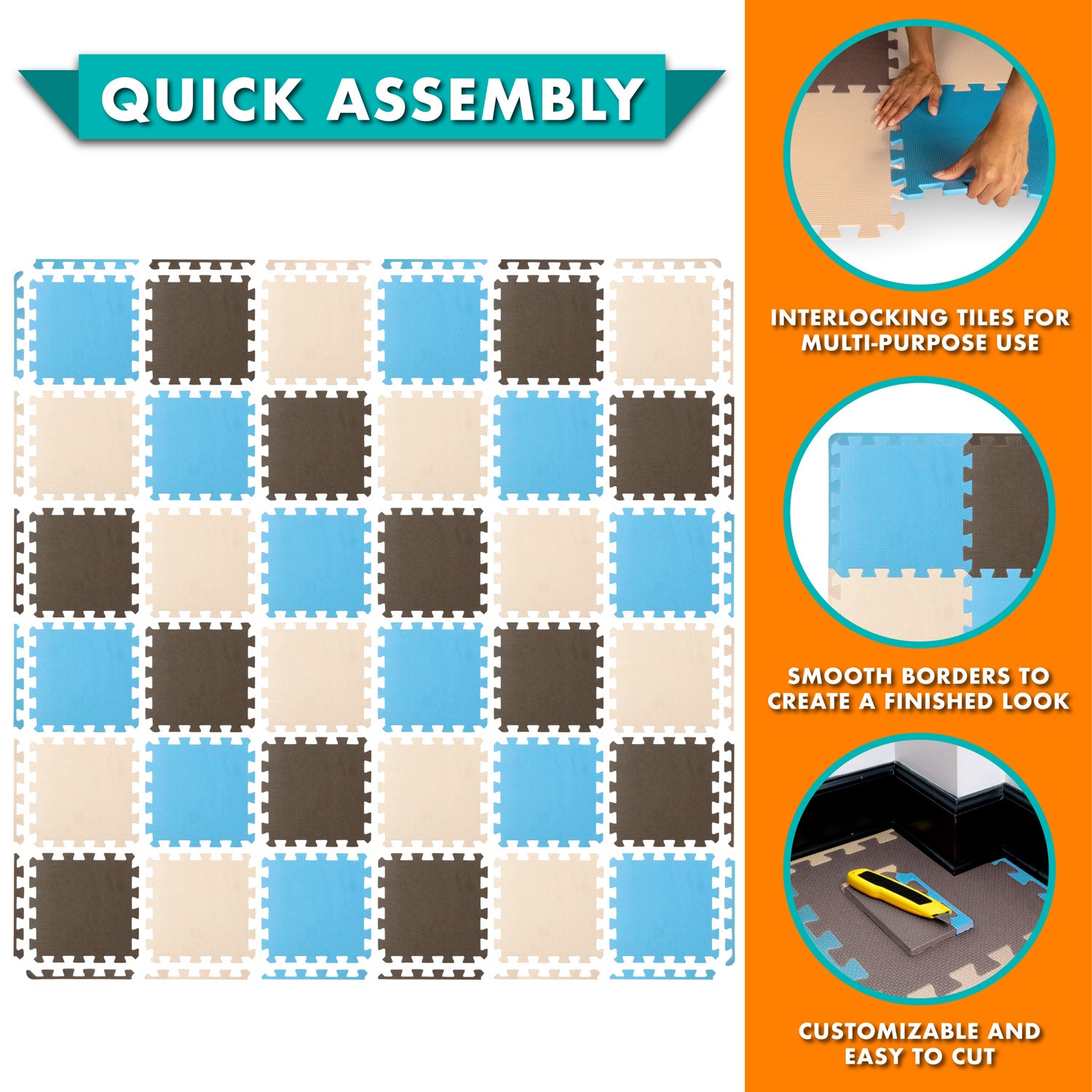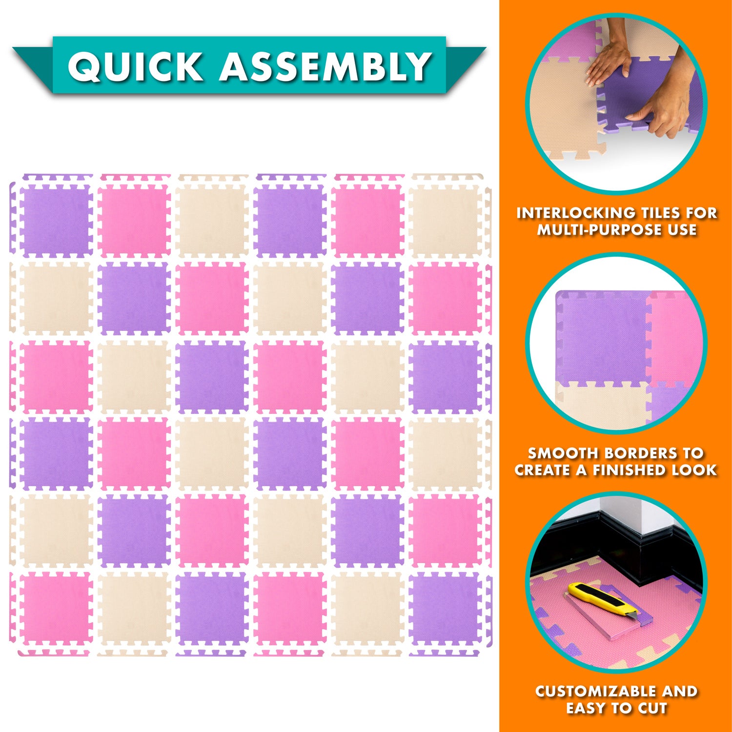 Make playtime more engaging with the ProSource Solid Puzzle Mat for Kids. Featuring 36 interlocking foam pieces, it provides protection and engages your child’s attention with its bright color scheme. Turn any area into a safe and interactive play space for your little one with this colorful mat.