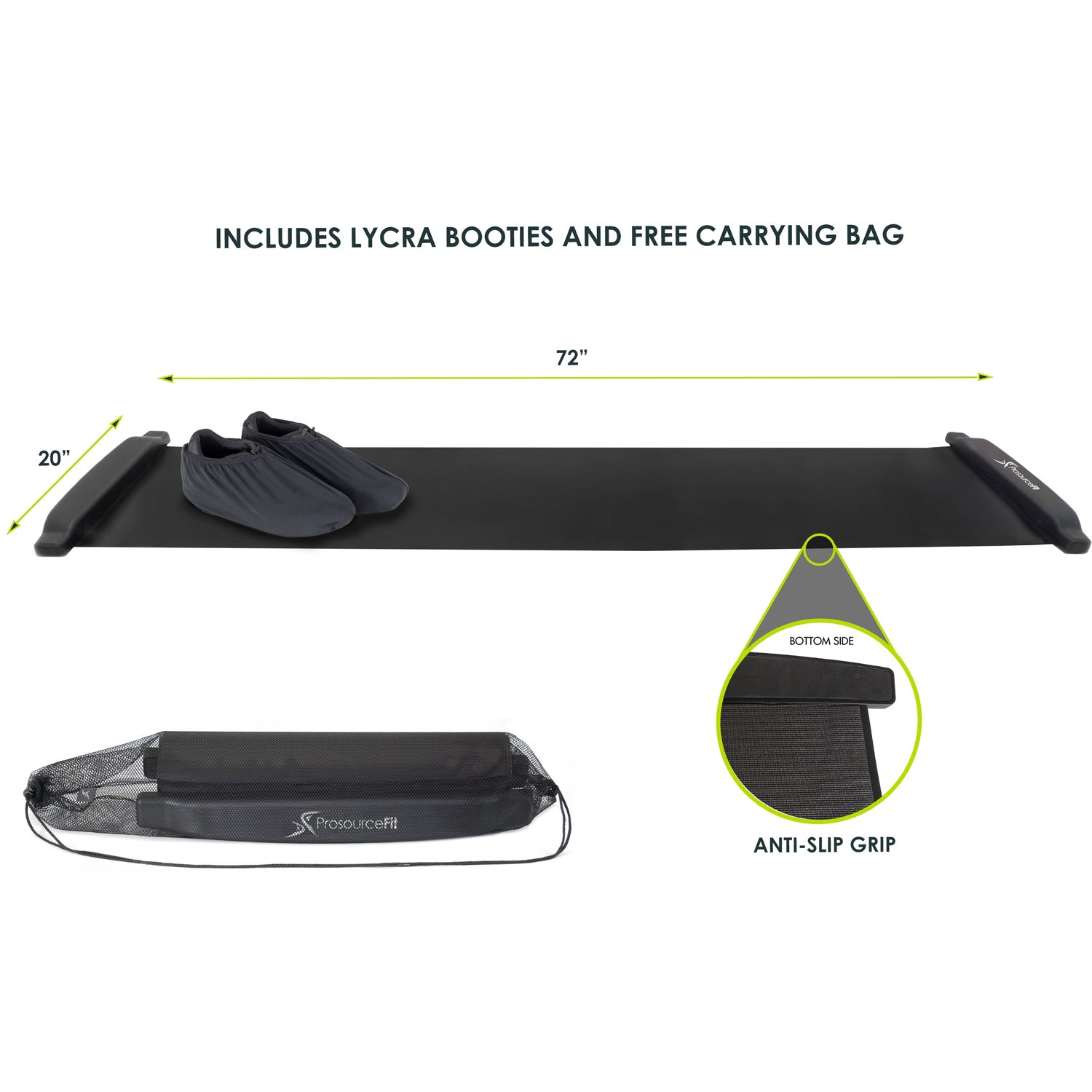 Glide into great shape with the ProsourceFit Slide Board! The 6-foot long mat offers smooth skating with bumpers to help you slide back and forth for a high-intensity, low-impact workout. It’s ideal for cardio and lower body workouts, hockey training, and physical therapy. The lightweight fitness mat comes with free booties and a mesh carrying bag for easy storage and portability.