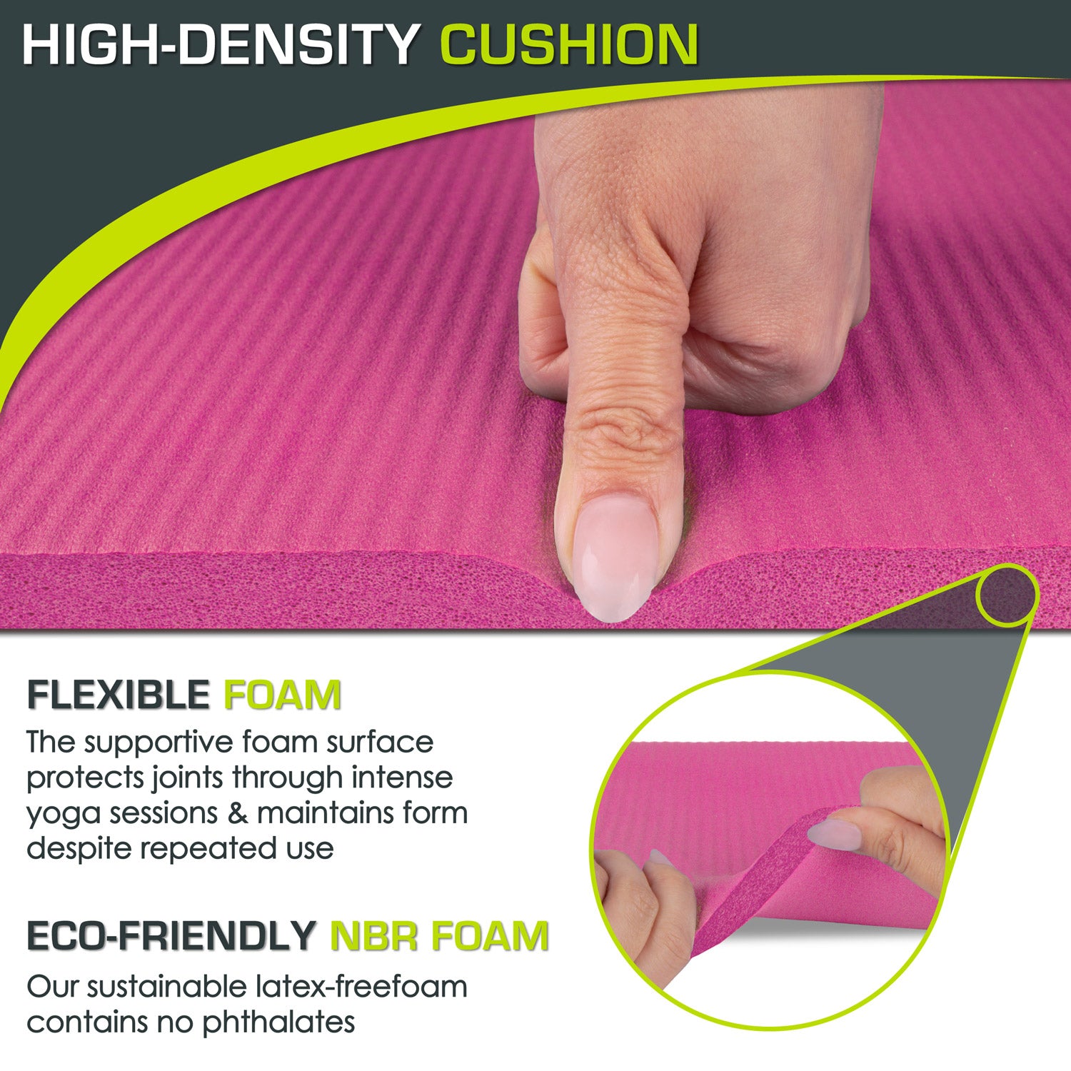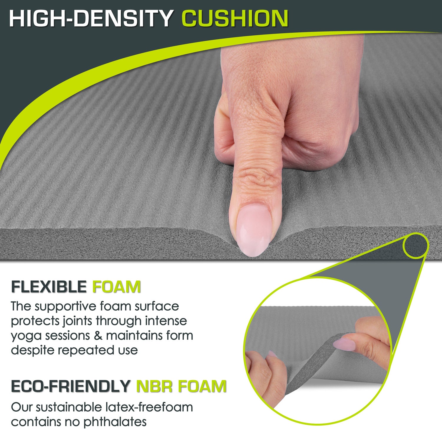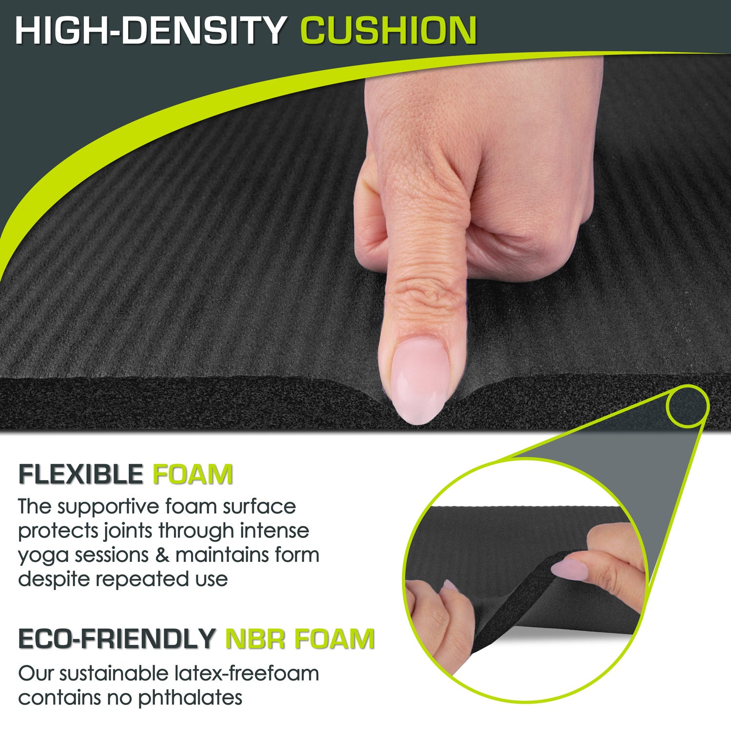 The ProsourceFit Yoga Knee Pad is the perfect solution for achy joints during floor exercises—whether you're doing yoga or not! This compact cushion supports your knees during ab wheel rollouts, doubles as a seat pad, and protects your elbows during plants or other gym movements. Made from 15mm thick high-density NBR foam, it provides just the right amount of support and comfort for floor-based workouts like yoga, Pilates, or stretching. You'll actually enjoy poses like camel, boat, headstands, and bird-dogs—without the nagging joint pain. It's also ideal for cushioning your head during savasana, bridge pose, and other supine postures. Measuring 24 inches long by 10 inches wide, it matches the width of your yoga mat to seamlessly support your practice without the bulk or fuss of folded blankets. Lightweight and easy to roll up, it's convenient to carry and quick to position wherever you need extra padding. The eco-friendly NBR material is non-slip, waterproof, and easy to clean—making it great for everything from restorative stretches to hot yoga. Plus, it's latex- and phthalate-free for safe, worry-free use. Choose from six colors to match your unique yogi style.