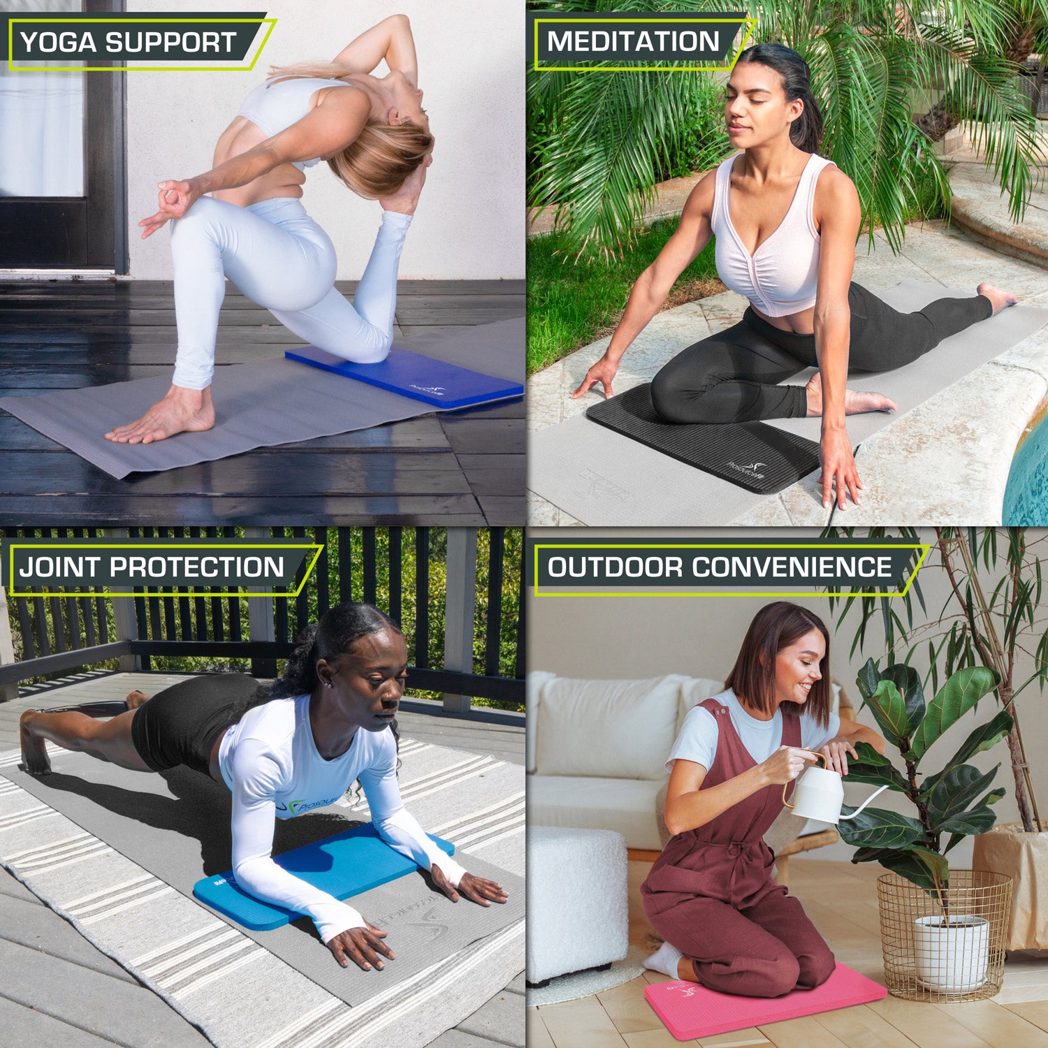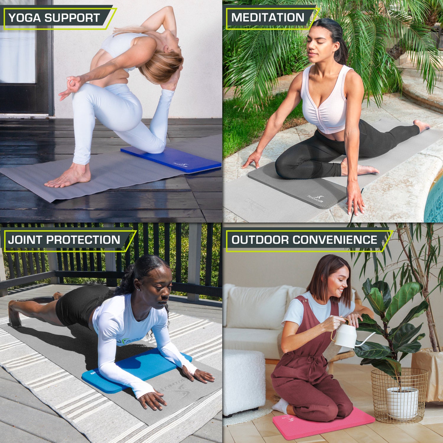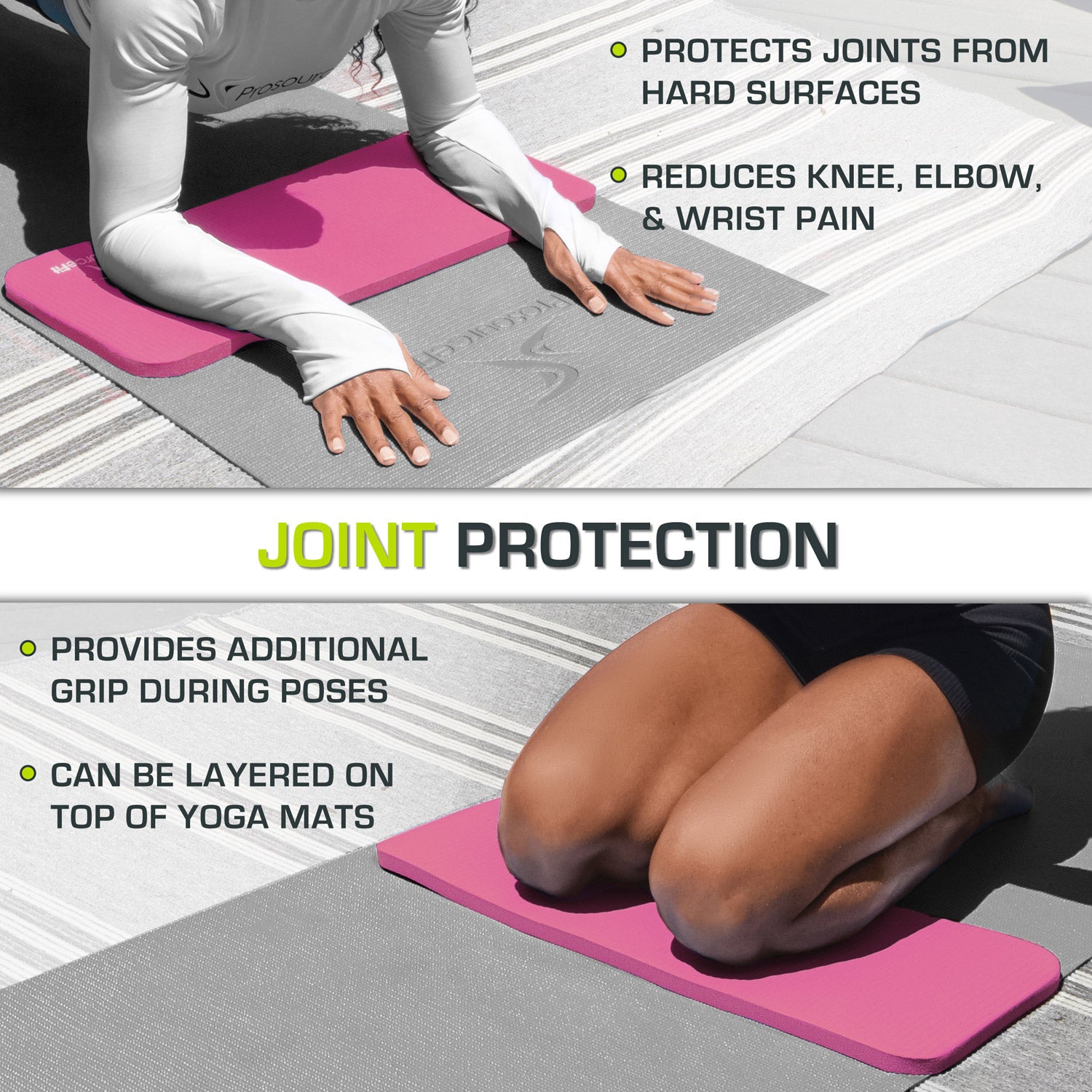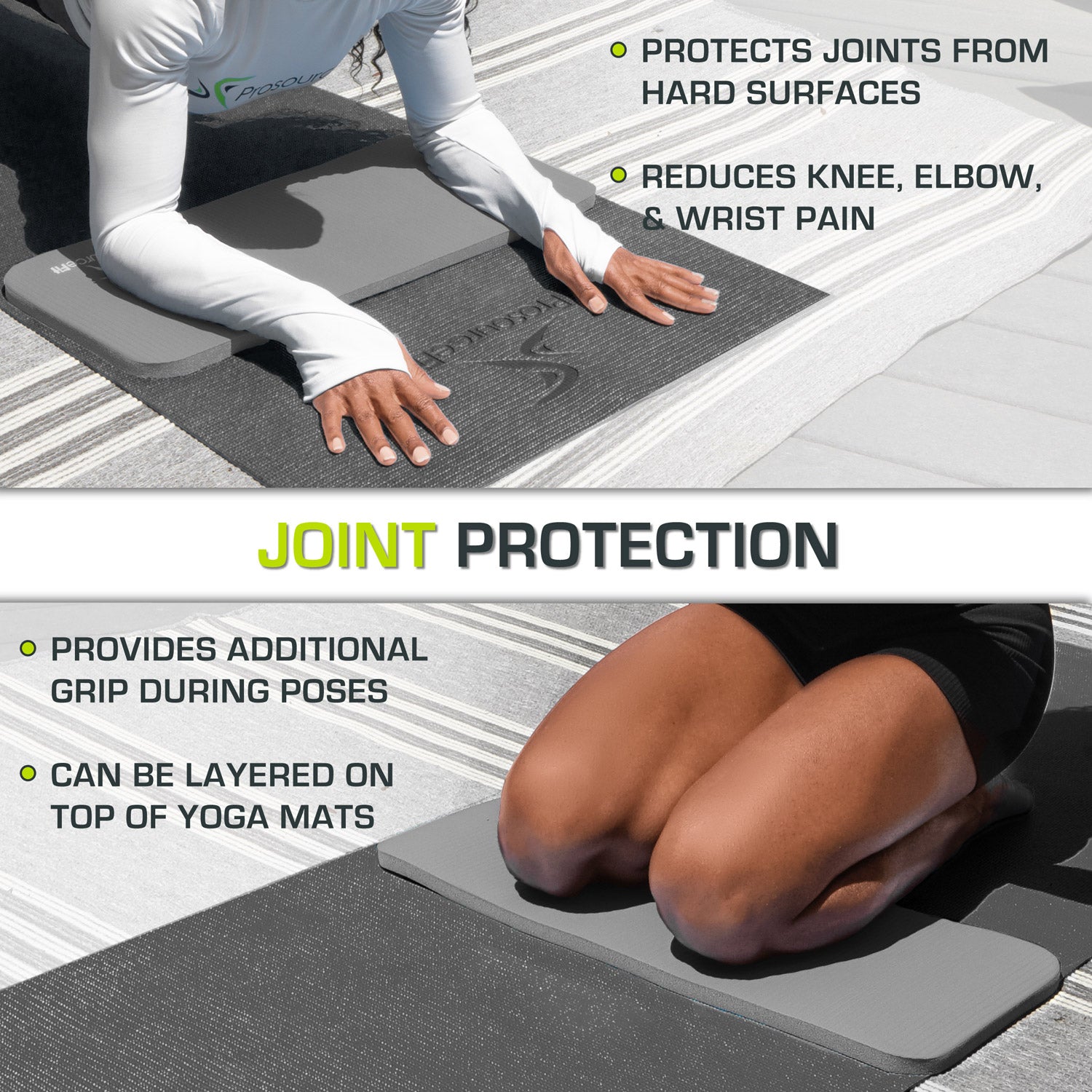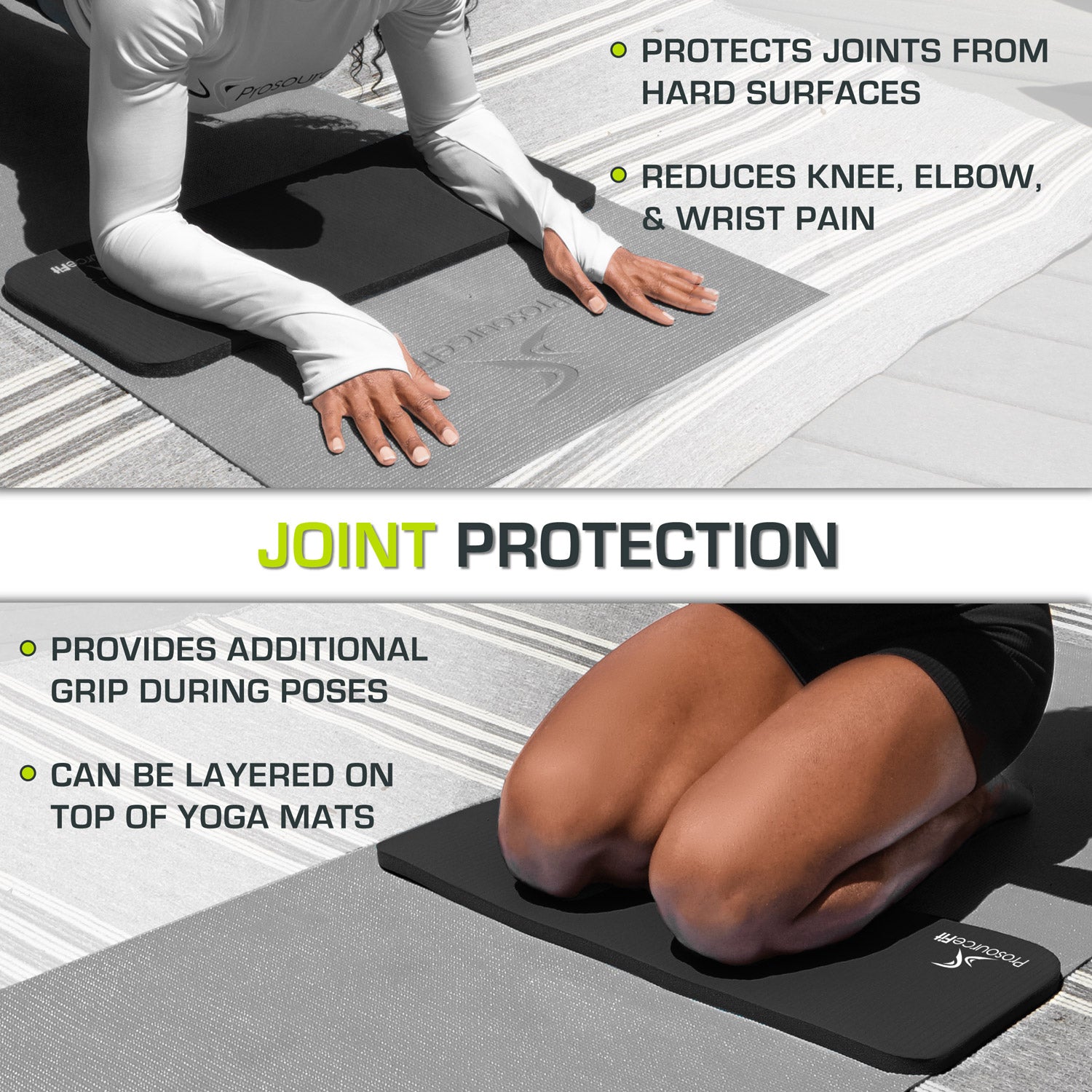 Enjoy the experience of a comfortable yoga practice with ProsourceFit Yoga Knee Pads! Protect your sensitive knees, elbows, and sit bones without the bother of stacking blankets that move around, or folding over your yoga mat. Just grab a yoga knee cushion pad for padding where you need it, when you need it, with this compact and convenient solution.